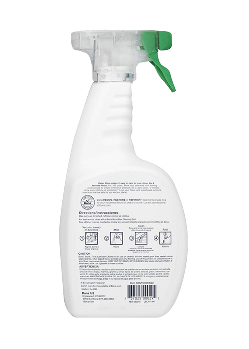 Bona Stone, Tile and Laminate Floor Cleaner is designed to be safe and effective for use on hard surface floors. The specially designed degreasing formulation effectively removes dust, dirt and grime leaving your floors clean and beautiful. The Greenguard Gold certification confirms it’s safe for use in your home and around your family.