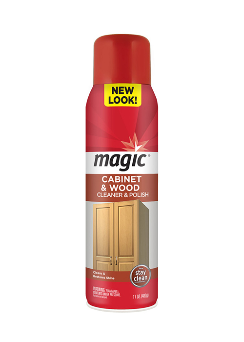 Made with Stay Clean Technology, the Magic Cabinet & Wood Cleaner & Polish Aerosol restores shine and beauty to your cabinets and furniture. It also leaves a transparent, protective coating to repel water marks, dirt and grime.