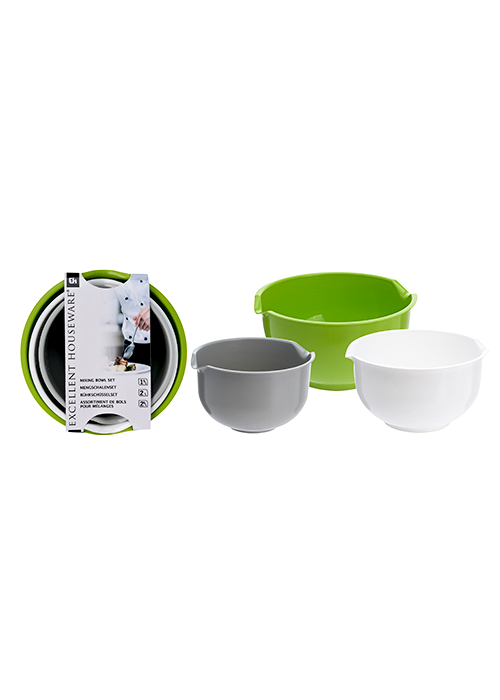 Set Of 3 Plastic Mixing Bowls Of 2.5, 2 And 1.5 Liters Ultra Practical For The Preparation Of Your Cakes.