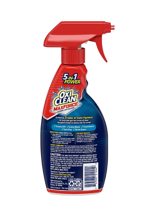 OxiClean max force 5 inch 1 power tackles the toughest dried in stains with 5 types of stain fighters to remove grease, oil, grass, blood, soil, clay, food and drink stains the 1st time.