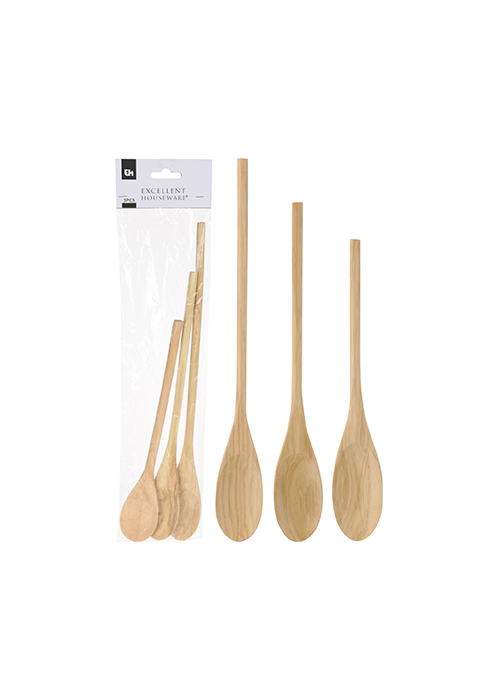A set of wooden spoons with 3 different lengths; small, medium and large. The wooden spoons are perfect for non-stick cookware as they won’t scratch your pots and pans.