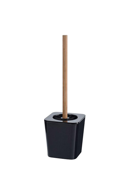 Universal toilet brush with stand. The brush is made of plastic with a bamboo handle. It will be a practical and elegant addition to the bathroom.