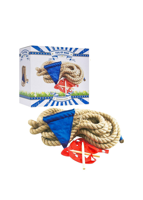 Old fashioned tug of war! To be played 1 against 1 or between 2 teams Place the rope on the ground and mark 2 lines within one meter of the flag. Who will pull the other person over this marker first? Contents: 10 meters of rope with a flag in the middle