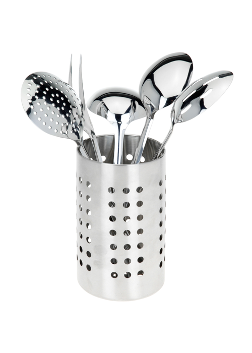 Contents: Ladle, Soup Ladle, Perforated Ladle, Slotted Spoon, Carving Fork, And Circular Container To Keep Them In